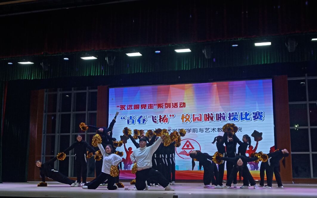 12月19日晚,我院“永远跟党走”系列活动第一届校园啦啦操大赛成功举行,本次活动以“青春飞扬”为主题,全院20个班400余名选手参加了本次比赛。