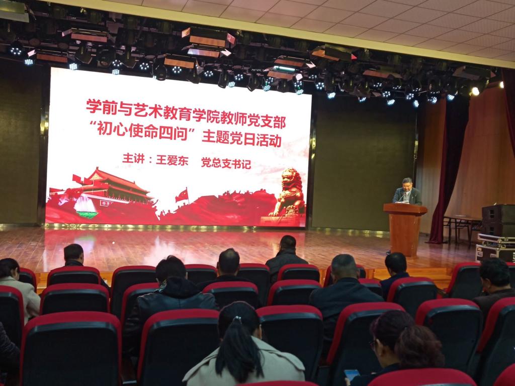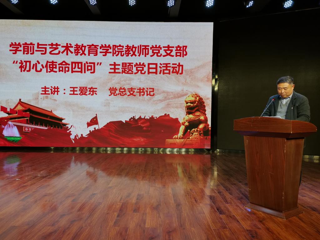 2019年11月18日下午,我院教师党支部在学院一楼演播厅组织开展“初心使命四问”主题党日活动。会议由党总支书记王爱东主持,全体教师党支部成员参加了本次活动。