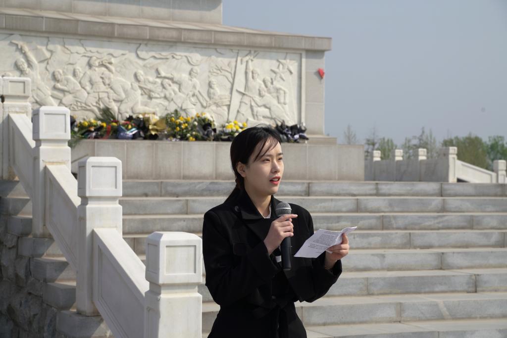 学生代表朱琳琳发言,她表示要继承革命先烈遗志,用强烈的爱国主义精神丰满心灵,勤奋学习,完善人格,努力成才,把自己成长为对国家、对民族、对社会有作为、有贡献的人。