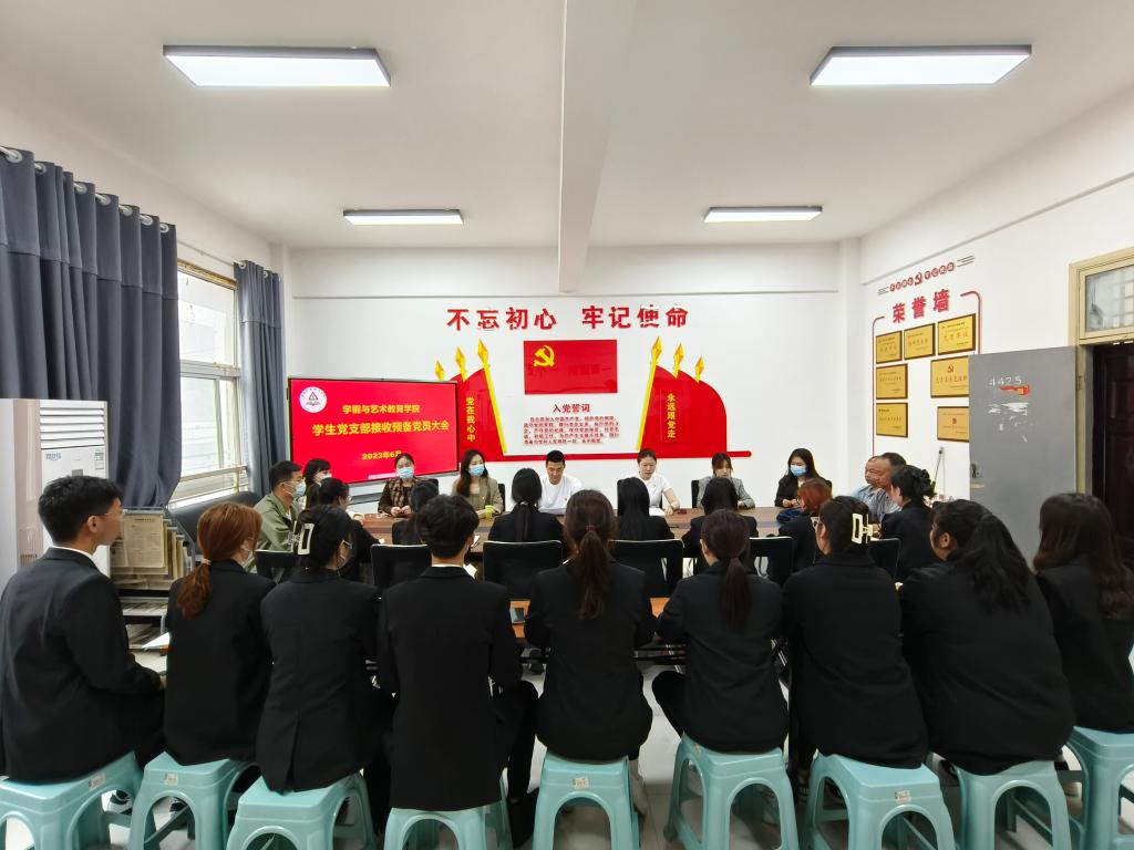 学生党支部青年委员周姣姣同志带领新接收的预备党员宣誓,全体预备党员齐声跟读誓词,庄严地向党许下自己的誓言。