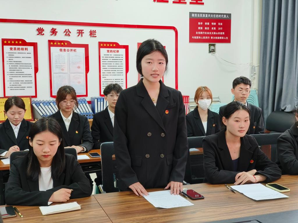 会议严格按照党组织接收预备党员的程序展开。首先由项文静、申春梦等22名发展对象依次向支部大会汇报自身对党的认识、入党动机以及自己在培养考察期间思想、学习、生活中的表现。接着,入党培养人介绍发展对象的培养过程、发展对象的现实表现以及对其入党的态度。随后,学生党支部纪检委员刘心瑜同志代表支委会向大会报告对项文静,申春梦等22名同志的综合政治审查情况。经支部党员充分讨论,出席大会的全体党员进行了无记名投票,大家一致同意接收项文静、申春梦等22名发展对象为中共预备党员。