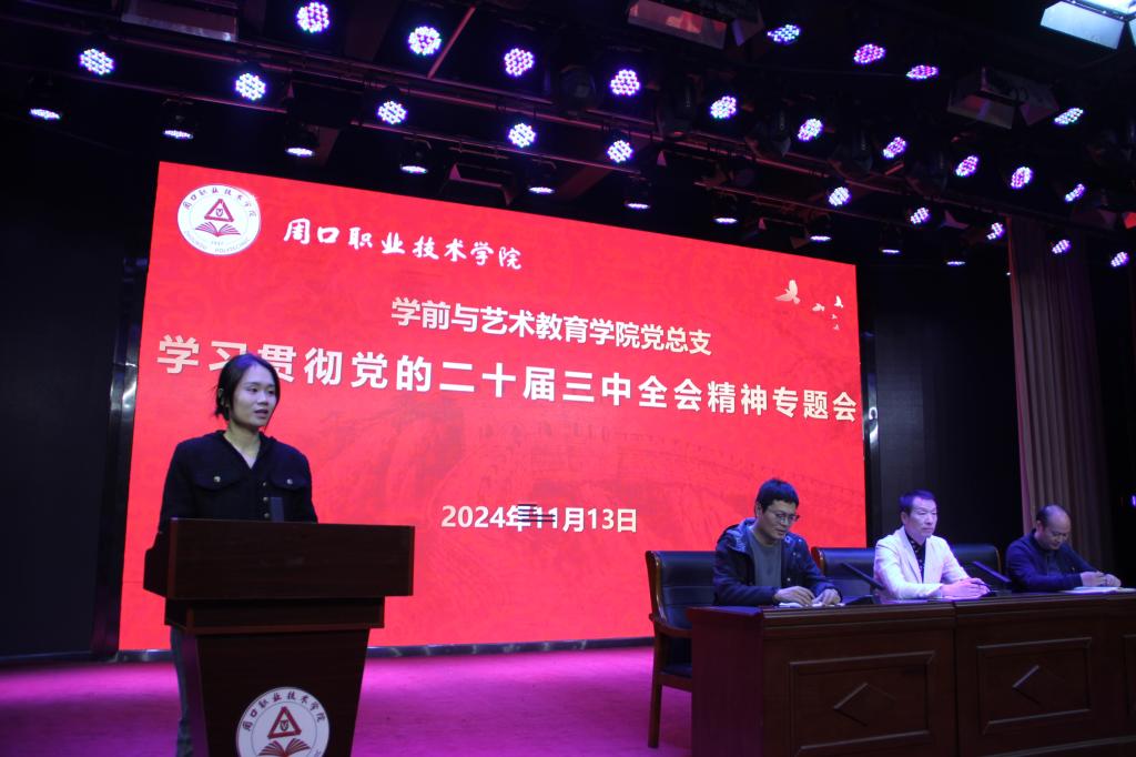 11月13日,十大买球官方网站党总支在艺术演播厅召开学习贯彻党的二十届三中全会精神专题会,学院全体党员教师参加,会议由副院长杨晨主持。