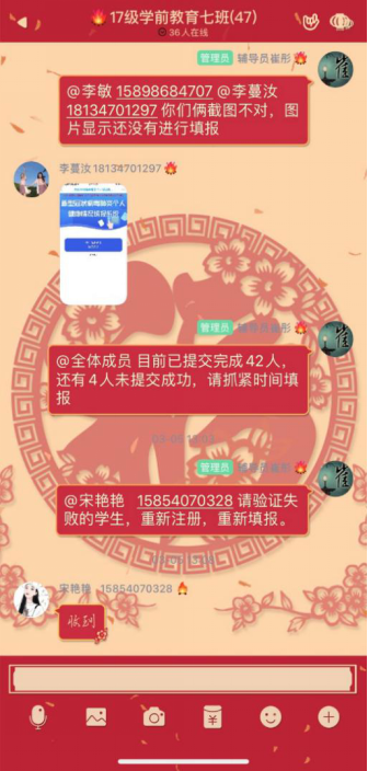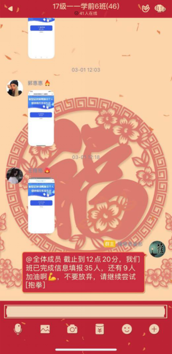 为了让每一位学生都能顺利听课,及时向学生传达省教育厅推出的特殊困难家庭学生家用宽带免费提速和手机流量费用减免福利,怕家长和同学们不理解,辅导员周东灵老师在群里一遍遍解释,争取不落下一位学生,保证每位学生都能顺利上课。
