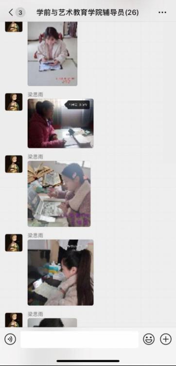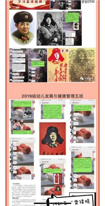 晚间,辅导员崔彤彤老师通过线上开展丰富的学生思想引领活动,发动广大学生参与疫情防控期间大学生思想状况问卷调查、疫情防控倡议书,争当“最美志愿者”,组织“众志成城抗疫情,学前艺术在行动”主题活动作品展、雷锋月主题团日活动等,引导团员青年积极运用短视频、海报、书法、绘画等形式创作了一批喜闻乐见、内容积极、形式丰富的抗“疫”文创作品,分享疫情防控工作中涌现出的先进事迹、典型人物以及所展现的无私奉献、攻坚克难、众志成城的新时代雷锋精神。同学们纷纷表示要在抗击疫情和今后的学习生活中,弘扬雷锋精神,争做新时代向上向善好青年,为打赢疫情防控阻击战贡献青春力量。