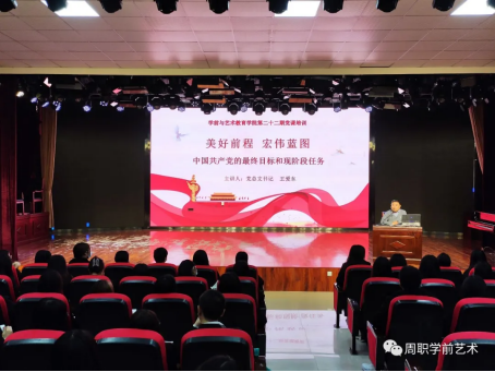 11月28日下午,十大买球官方网站党总支书记王爱东在一楼演播厅以“中国共产党的最终目标和现阶段任务”为主题,为学院第二十二期入党积极分子培训班全体学员上了一堂生动、深刻的党课。