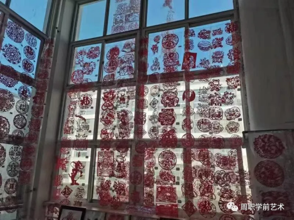 本次剪纸活动以《庆元旦 迎新年》为主题,由方方老师和李艳霞老师带领学前教育1—5班、7—10班及幼教1班的学生共同完成。以传统民间剪纸艺术与高职学前教育专业《美术与手工》课程的整合为切入点,拓宽传统剪纸审美文化和表现内容,构建适合学生的剪纸活动体系。通过学习,让学生了解中国剪纸,喜爱剪纸艺术,尊重和传承剪纸文化。