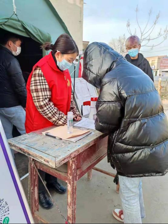 2021级学前教育四班的孙梦新同学,来自河南省兰考县迎宾路人和春天,在疫情防控期间,她积极响应号召,在本地村口卡点值班站岗,登记返乡人员、进行信息采集、测量体温和协助进行当地核酸检测工作。