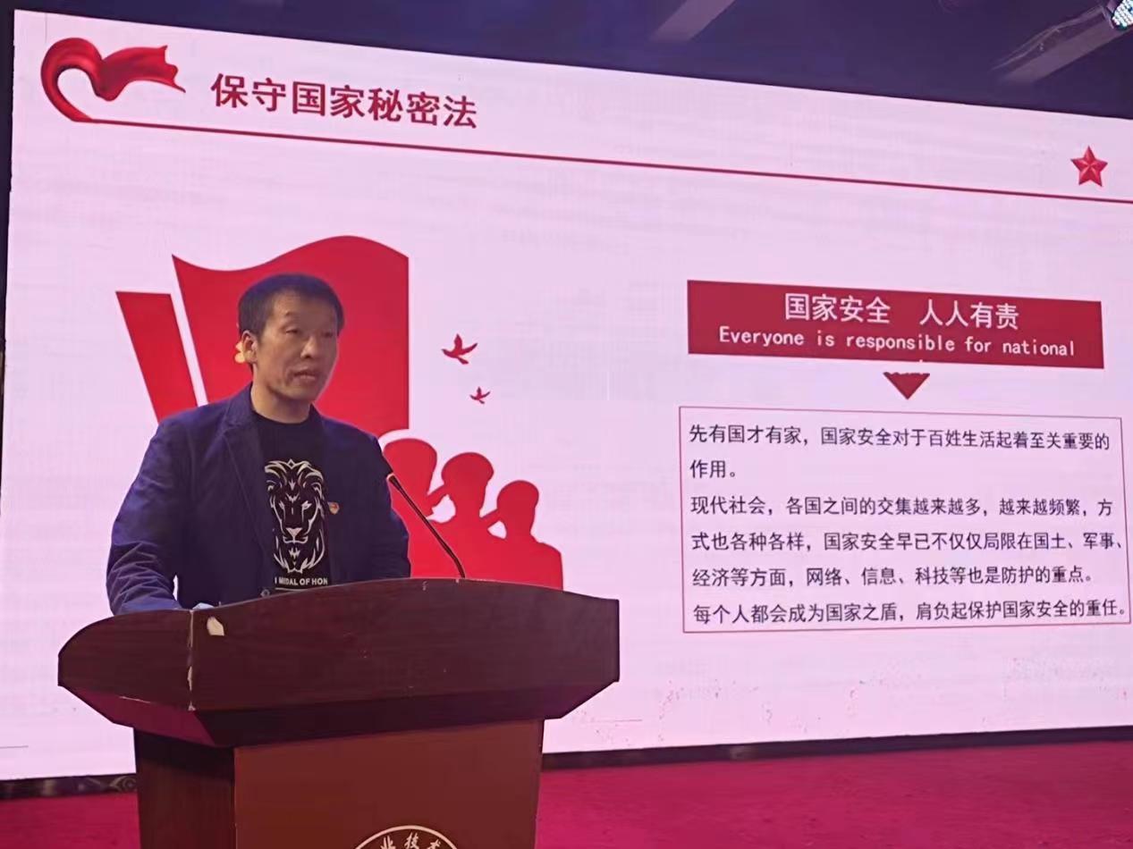 党总支书记王春生围绕习近平总书记关于“总体国家安全观”的重要讲话精神,从国家安全的基本概念切入,分别从国家安全的含义、国家安全工作和总体国家安全观等方面作详细讲解,对增强大学生保密意识和保密工作能力具有很强的指导性。他强调,大学生要以总体国家安全观为指导,自觉维护国家安全,并同危害国家安全的各种行为作斗争。