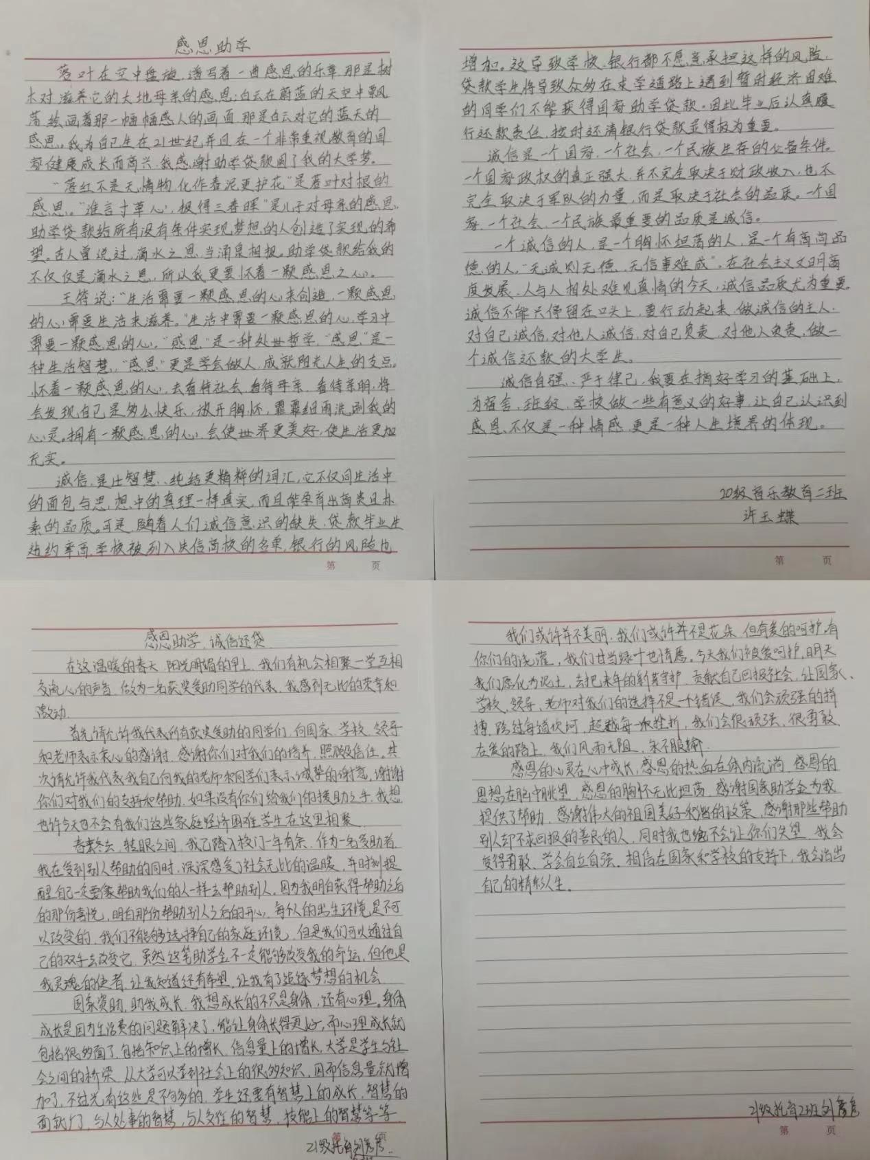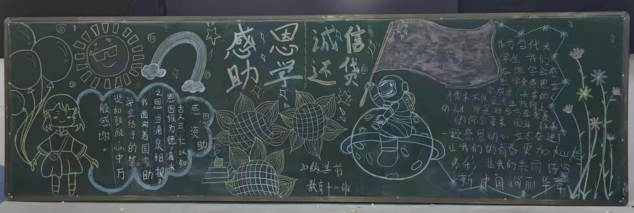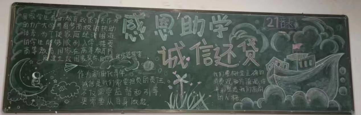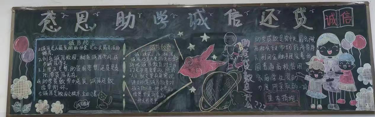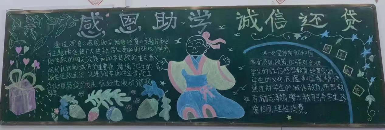 本次活动以资助政策专题讲座、主题班会、主题黑板报、主题征文、“感恩助学,诚信还贷”演讲比赛及资助学生典型事迹等多种方式进行。丰富多彩的资助育人活动,以育人为导向,多渠道、多层次、全方位的宣传了国家资助政策,增强了学生的社会责任感,着力培养学生的诚信意识和感恩意识。