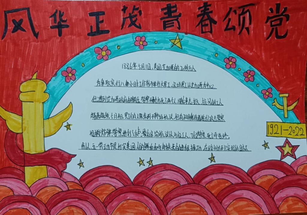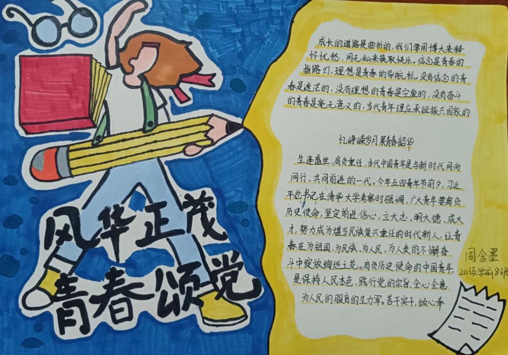 为讴歌劳动精神,弘扬五四传统,学习先辈的光荣传统,增强学生的中华民族自尊心和自豪感,激发学生爱党、爱国热情,5月4日,十大买球官方网站组织开展“风华正茂,青春颂党”主题手抄报活动。学院全体学生参加此次活动。