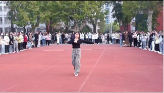 中场休息期间,同学们以歌舞表演来活跃活动现场气氛。