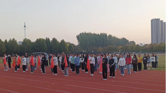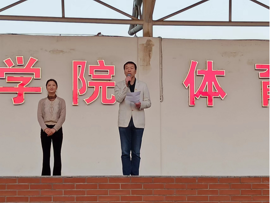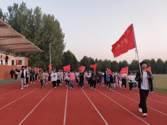 首先学生处长刘冬霞,校团委书记张华珍为跑团授团旗。体育学院院长徐长宇,党总支书记王春生为跑团9个队分别授队旗。