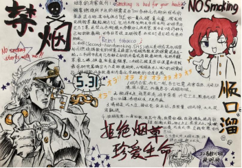 禁烟控烟手抄报活动中,同学们借助手中的画笔绘制成了一幅幅主题鲜明、思想积极、内容丰富、设计新颖的手抄报作品,普及禁烟控烟知识,宣传健康理念。