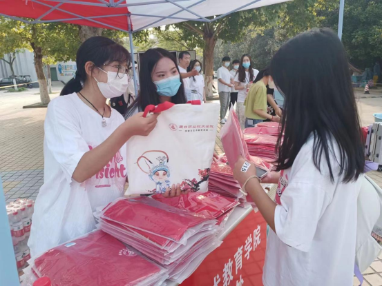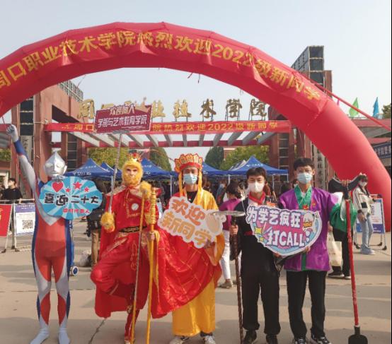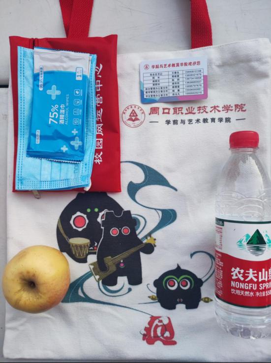 清晨6:30,晨曦初露,在学院党总支书记王春生、院长高岐奎的带领下,学院领导班子和全体21级、22级辅导员老师,迎新志愿者有序开展迎新工作,确保疫情防控期间新生顺利入学。扮演西游记师徒四人、“带着光的奥特曼”的学长们在学校门口为学弟学妹们接应指路,小萌新们通过扫码、测温、消毒进入校园,辛勤的志愿者们穿梭在帮助小萌新寄存行李到运送车上。学院还为22级小萌新们准备了精美的“开学大礼包”,有学院定制的帆布包,封面设计精美,正面的梅花寓意着学生们刻苦学习,梅花香自苦寒来,青衣代表着中国戏曲的国粹艺术,反面的泥泥狗是周口文化的象征,可爱迎新贴纸,降温解暑的矿泉水和苹果及学院领导、新生辅导员联系方式的暖心卡,并派专人带着小萌新们去往“月尊大人”新生报到处,他们以实际行动践行初心和使命,展示学院风采,成为迎新现场一道道亮丽的风景。