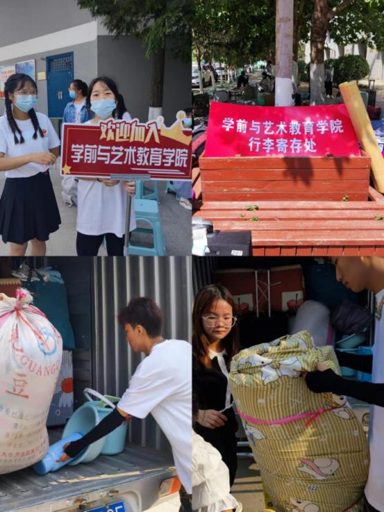 负责接待的迎新志愿者们用热情的微笑与周到的服务全程引导新生报到、接收档案、查验个人信息表、迎新服务队带着小萌新们前往行李寄存处。他们忙碌的身影体现了学院对新生暖心的关怀。一张张沁满细密汗珠的脸庞,口罩勒出的一道道痕迹,都是他们最美的勋章。