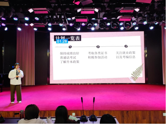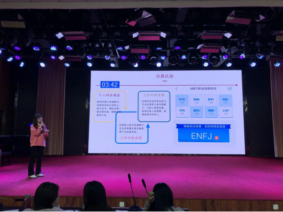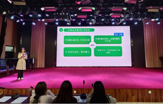 初赛赛场上,选手们围绕自我认知、职业认知、职业决策、评估与路径、职业道德五个方面生动具体的讲述了自己的职业生涯规划。赛场上,选手们自信大方,侃侃而谈,展现了青年大学生独有的风采。同学们结束演讲后,评委老师对参赛的同学进行点评。