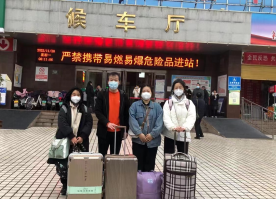 买球官网为返乡学生提供送站服务,组织大巴车进校,教师党员亲自跟车进行“点对点”送站,分别送学生到高铁站、汽车站。到站后,老师们帮助学生搬运行李,叮嘱学生途中做好个人防护,引导其安全有序乘车。在老师们的帮助下,离校学生全都坐上了返乡的列车。