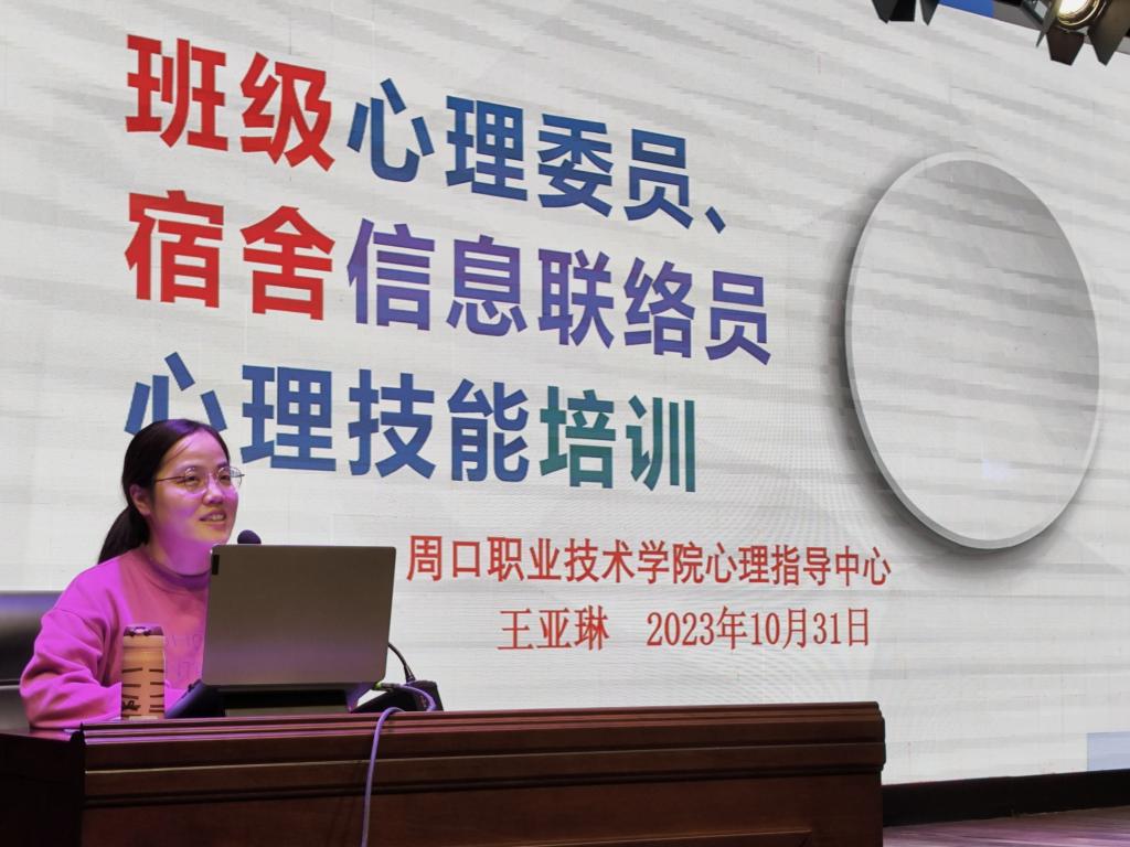 为进一步做好我院的心理健康工作,强化心理委员的朋辈互助能力,10月31日晚,十大买球官方网站在校砺德厅开展心理委员专题讲座。讲座由心理健康中心王亚琳老师主讲,我院22、23级各班心理委员、宿舍信息联络员到场聆听。