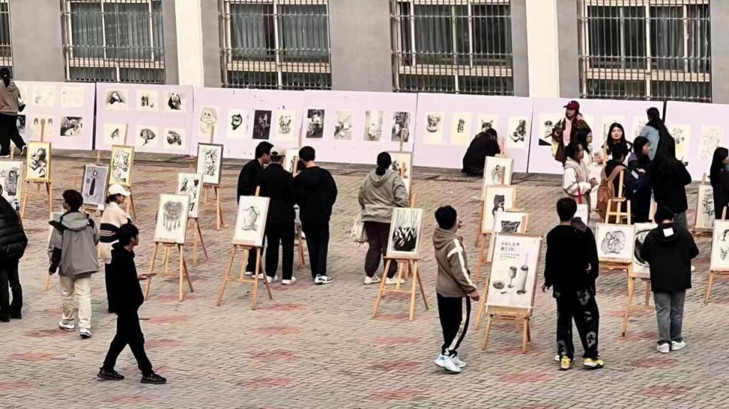 为提高学生学习积极性,营造专业学习的氛围,丰富学生艺术活动,11月9日,十大买球官方网站设计教研室在学院小广场举办2023级视觉传达设计专业“造型基础”课程作品展。