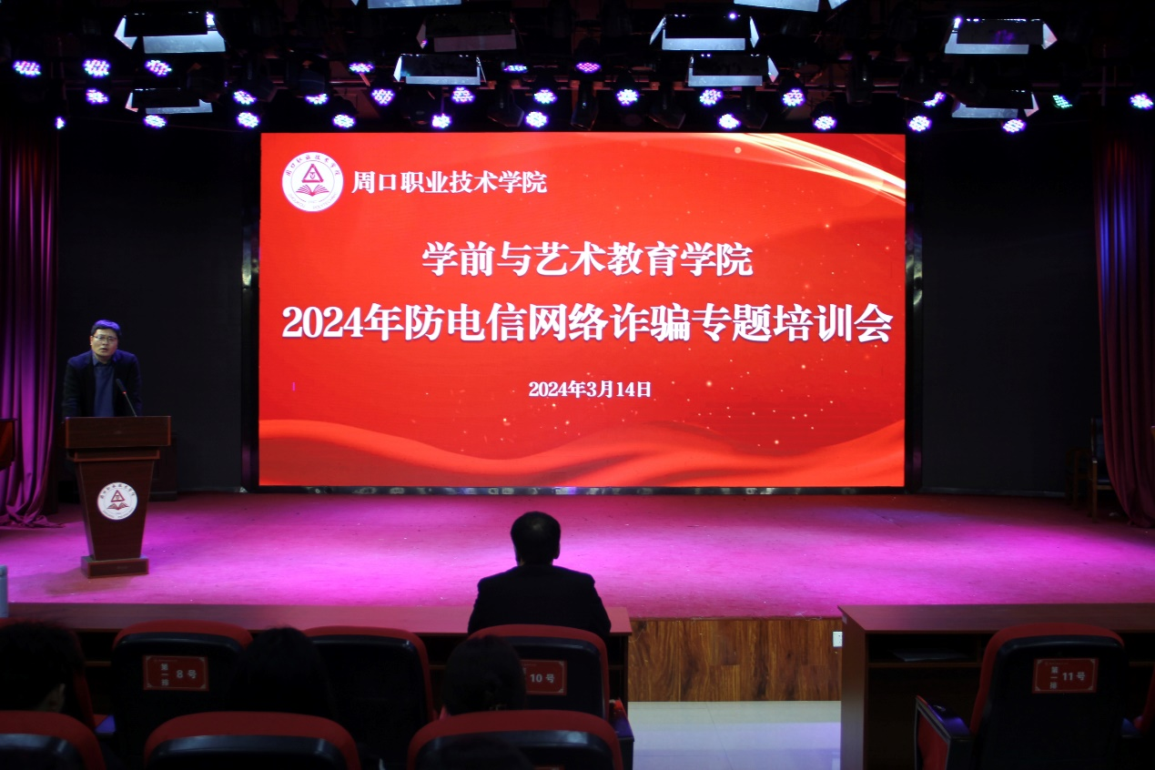 为进一步增强学院学生防范电信网络诈骗安全意识,保护学生财产安全,营造和谐稳定的校园环境,3月14日晚上,十大买球官方网站邀请周口市公安局经开分局太昊路派出所民警付建平、刘永辉来校,为学生进行防电信网络诈骗专题宣讲。十大买球官方网站党总支书记王春生出席培训会,学管办主任郑玉凡、教管办主任李晨阳、各班辅导员、团学骨干参加培训会,培训会由副院长杨晨主持。