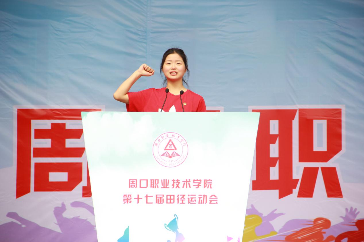 运动员代表十大买球官方网站2023级学前教育五班彭张敏进行宣誓:我们将以饱满的热情参加本届运动会,严格遵守赛事的各项安排,遵守比赛规则和赛场纪律,服从裁判,尊重对手,团结协作,公平竞争,顽强拼搏,赛出风格,赛出水平!