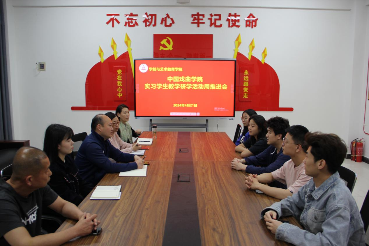 首先,高岐奎对中国戏曲学院学生一行表示热烈欢迎。他表示,希望同学们珍惜学习机会,做到学以致用、用以促学,及时总结反思,让自己的技能水平获得全面提升。随后,周琦介绍了我院戏曲专业发展现状,课程设置及具体授课要求。会上,实习学生依次发言,介绍了自己的专业。通过交流,确定了同学们在校实习、研学活动安排。
