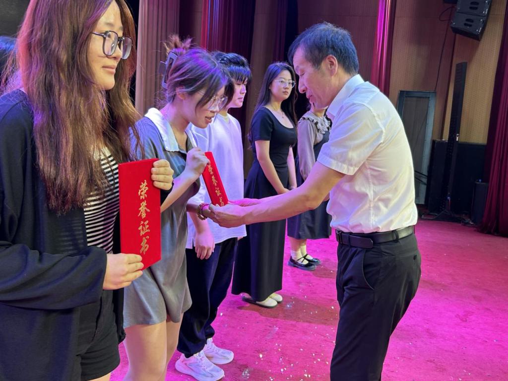 高岐奎宣读«2024年春季校园健康乐跑活动的表彰决定»。随后,与会领导为获奖学生、先进班集体颁奖。