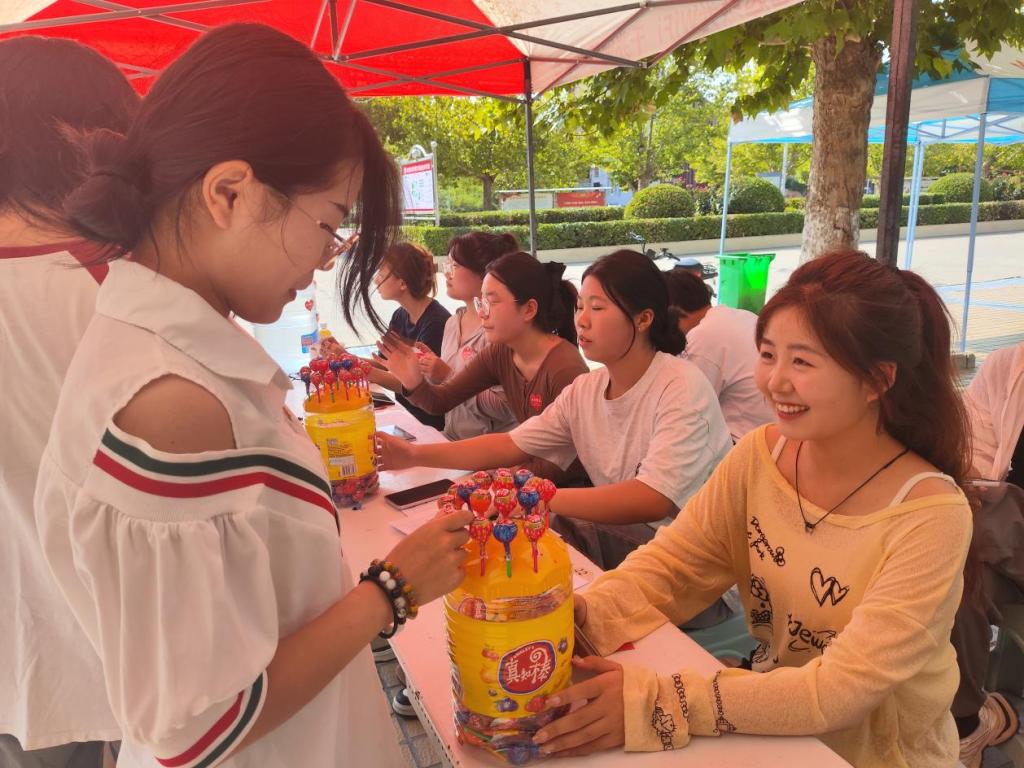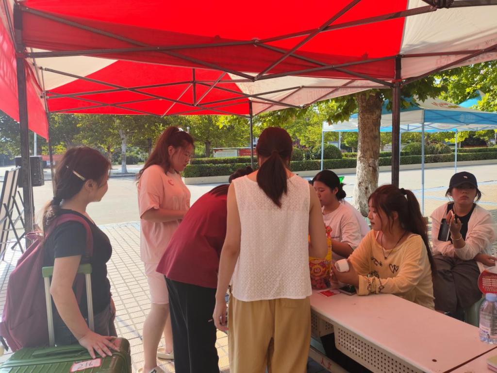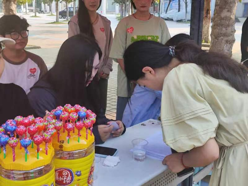 为了提高效率,学院精心设计返校登记流程指示牌,确保返校学生快捷地完成返校流程。天气炎热,学院还特别为每位学子准备了象征甜蜜、团圆的棒棒糖和平安帖。