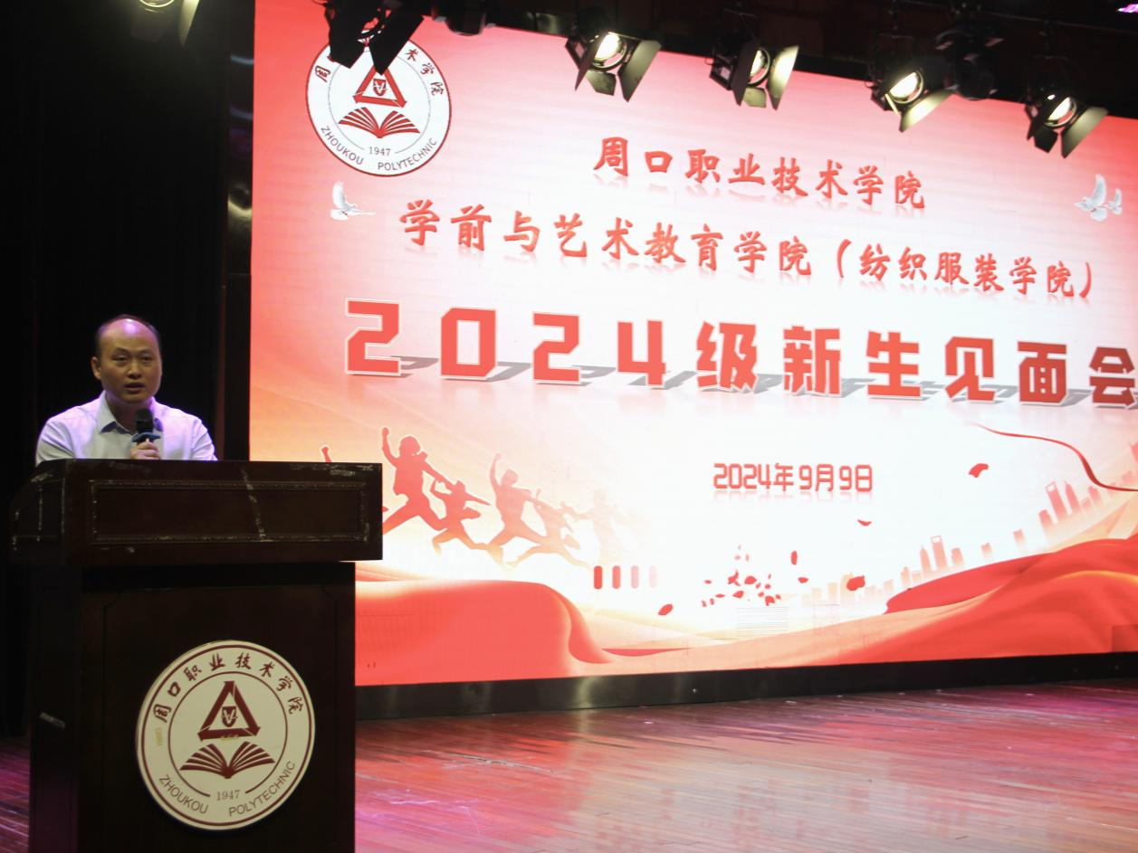 随后,王春生对632名新生表示了热烈的欢迎,并详细阐述了新生班级的分类情况、录取人数以及新生来源的地理分布。此外,他还播放了周口市的宣传短片以及买球赛十大平台的宣传片,旨在帮助新生更深入、更全面地了解周口地区及买球赛十大平台。