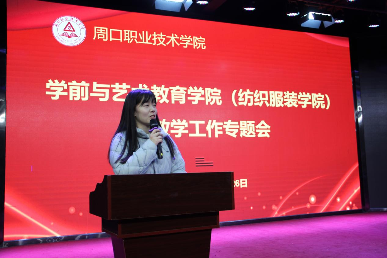 学前教育教研室主任吕维康就此次国赛的经验和感悟进行分享。她表示在大赛中取得的成绩离不开领导的大力支持以及参赛选手、辅导老师的辛勤付出,通过此次比赛,不仅提高了理论素质水平,更对工作中的规范性与细致度有了全新的认知。