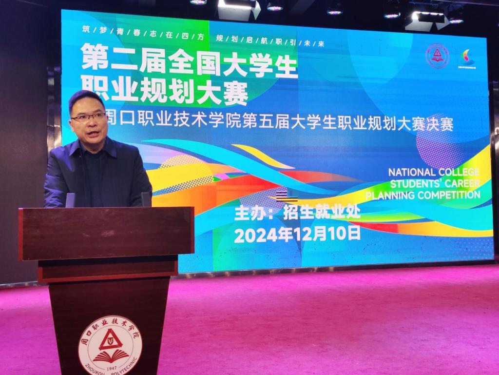 12月10日,由学校招生就业处主办的买球赛十大平台第五届大学生职业规划大赛决赛在我院艺术演播厅举行。买球赛十大平台副校长王隼、招生就业处处长许建国、副处长王芳、崔昕及各院部副院长出席活动。总决赛参赛选手、指导老师及各院部学生代表参加活动。万学教育集团张莉、徐鹏飞、李永老师担任本次比赛评委。
