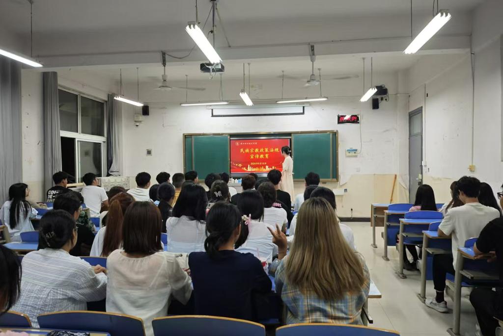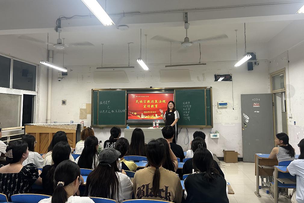 为进一步加强民族团结和宗教和谐,提升师生对中华民族宗教政策法规的认识,2024年9月10日晚自习时间,十大买球官方网站各班辅导员进班宣讲,集中开展了以“民族宗教政策法规宣传教育”为主题的宣传教育班会。