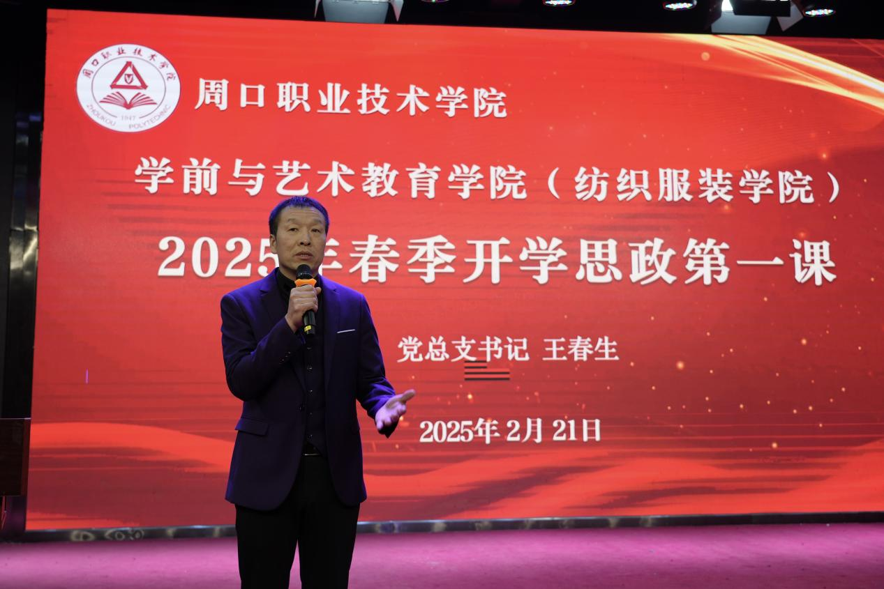 为帮助学生顺利适应新学期学习生活,进一步增强学生的文化自信和家国情怀。2月21日晚,十大买球官方网站(纺织服装学院)在艺术演播厅开展2025年春季开学思政第一课。23、24级团学干部、各班班长以及团支书参加课堂。学院党总支书记王春生授课。