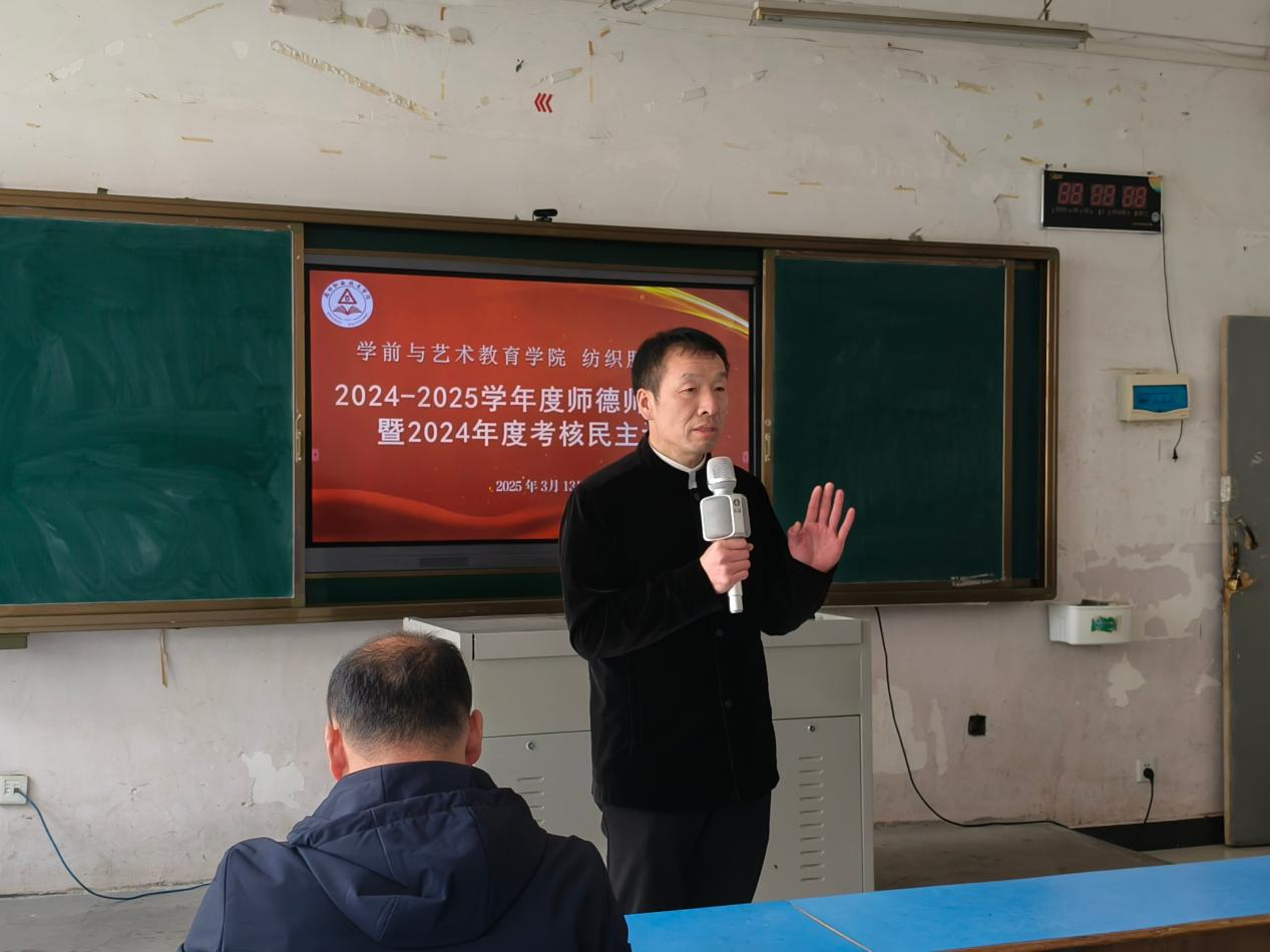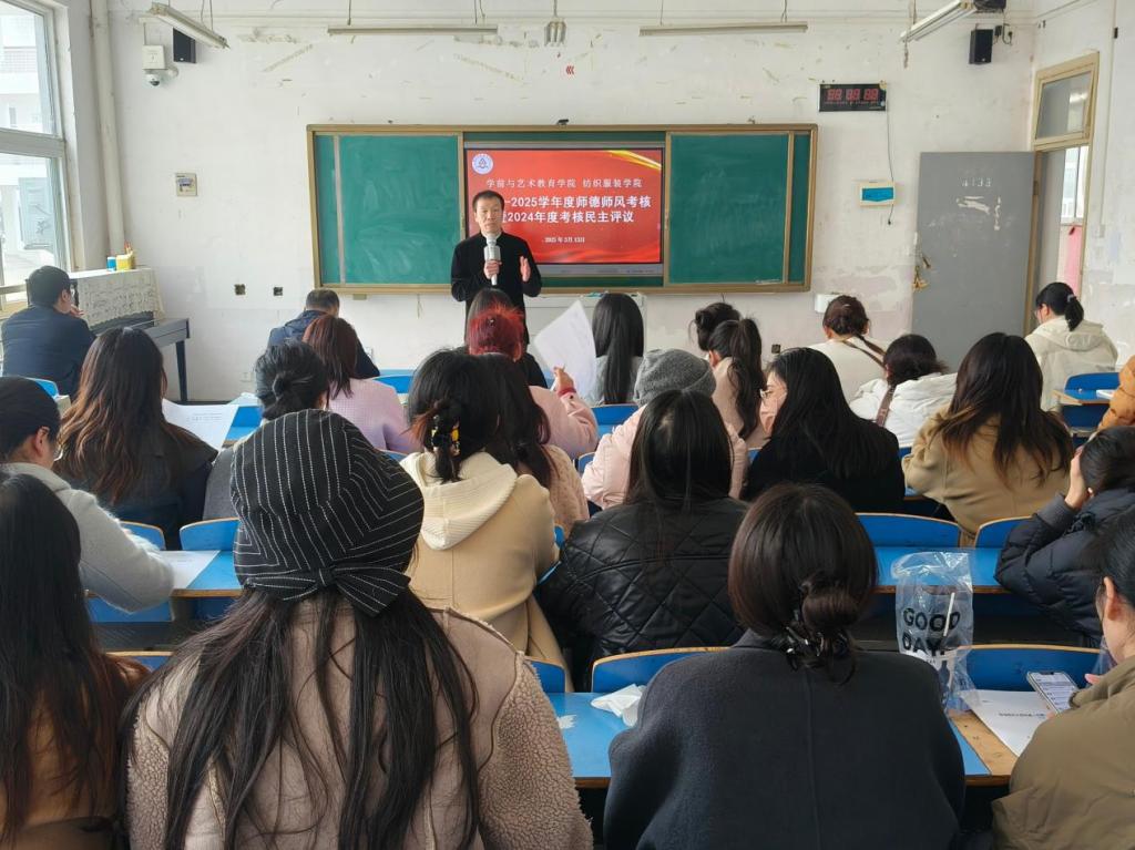为深入贯彻学校年度考核工作要求,加强师德师风建设,提升教育教学质量。3月13日下午,十大买球官方网站(纺织服装学院)在一楼4133教室召开2024—2025学年度师德师风考核暨2024年度考核民主评议工作会,学院班子成员及全体教师参加会议。会议由学院党总支书记王春生主持。