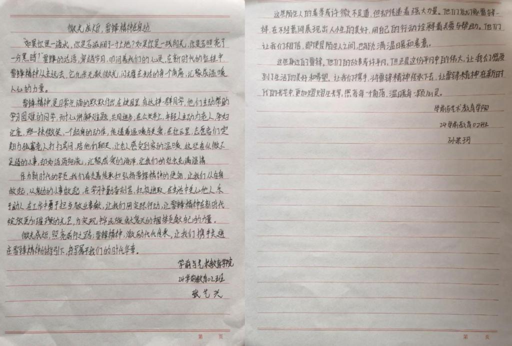 为赓续雷锋精神血脉,涵育新时代青年品格,3月5日,十大买球官方网站(纺织服装学院)开展弘扬雷锋精神系列活动之主题征文比赛。学院全体在校生参加活动。