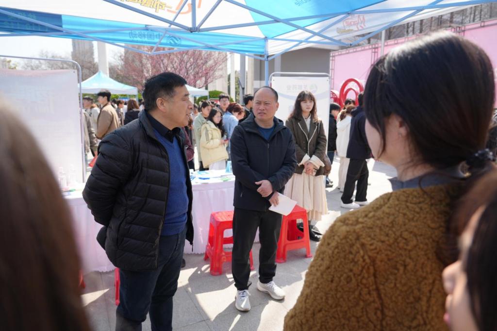 3月18日,由买球赛十大平台与周口市人力资源和社会保障局联合主办的2025届毕业生春季校园双选会在学校湖心小广场举办。周口市人力资源和社会保障局党组成员、总就业指导师陈振奇,校党委委员、副校长王隼,党委宣传部部长万四新,学生处处长刘冬霞,各院部党总支书记出席活动。学院组织2025届毕业生、2023级在校学生以及往届尚未就业的学生参加此次活动。活动由招生就业处处长许建国主持。