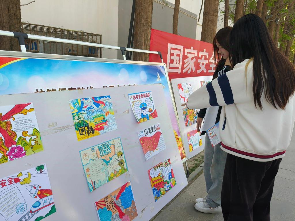 本次展览围绕4.15国家安全主题,共设置海报、书法、绘画三大展区。展品从多元角度出发,以富有创意的表达方式,生动诠释了总体国家安全观的丰富内涵,向同学们传递国家安全的重要理念。同学们驻足观看,在艺术熏陶中接受了一场深刻的安全教育。
