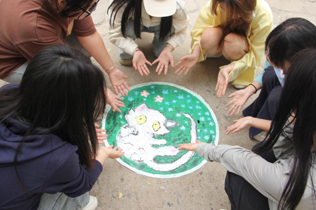 本次地绘活动不仅为学生搭建了展示艺术创意的舞台,锻炼了他们的专业能力和团队精神,更美化了学院环境。未来,“画外音”辅导员工作室将继续探索“美育+心理”育人模式,通过更多创意活动为学生心理健康成长赋能。