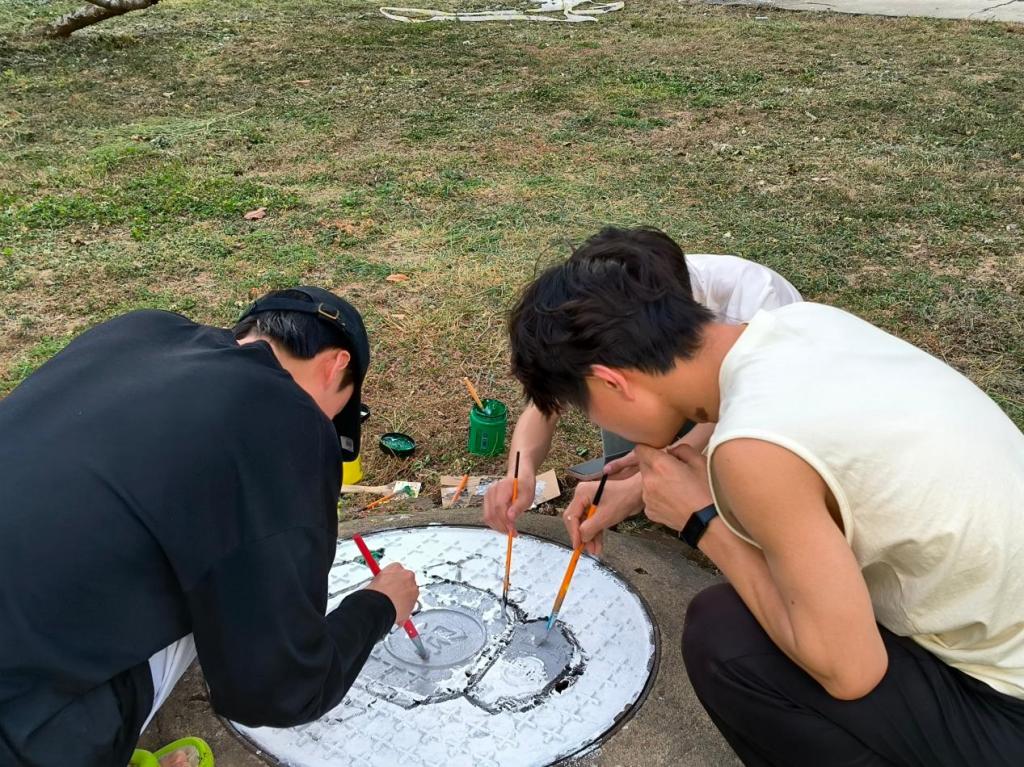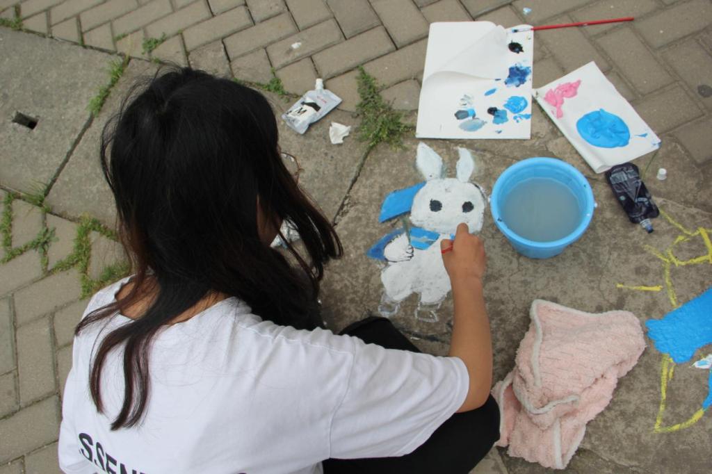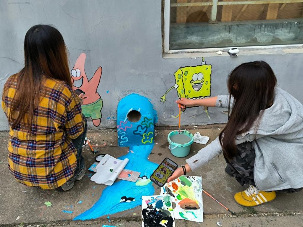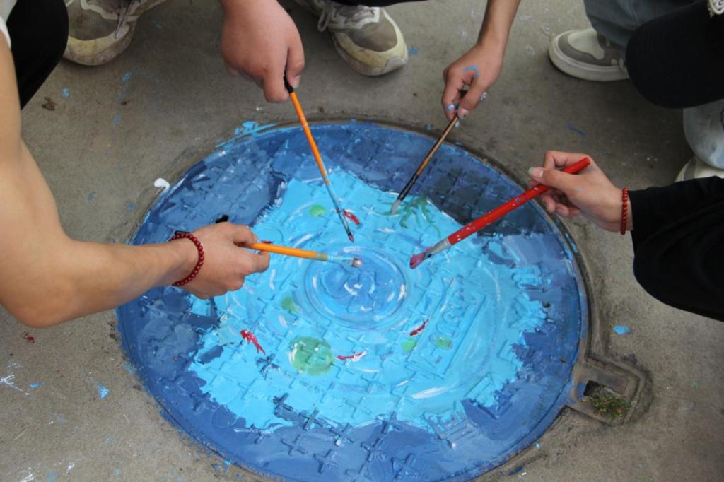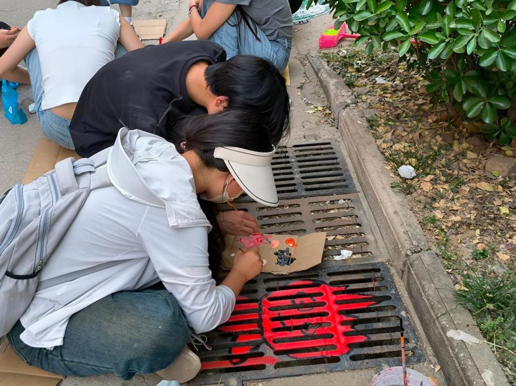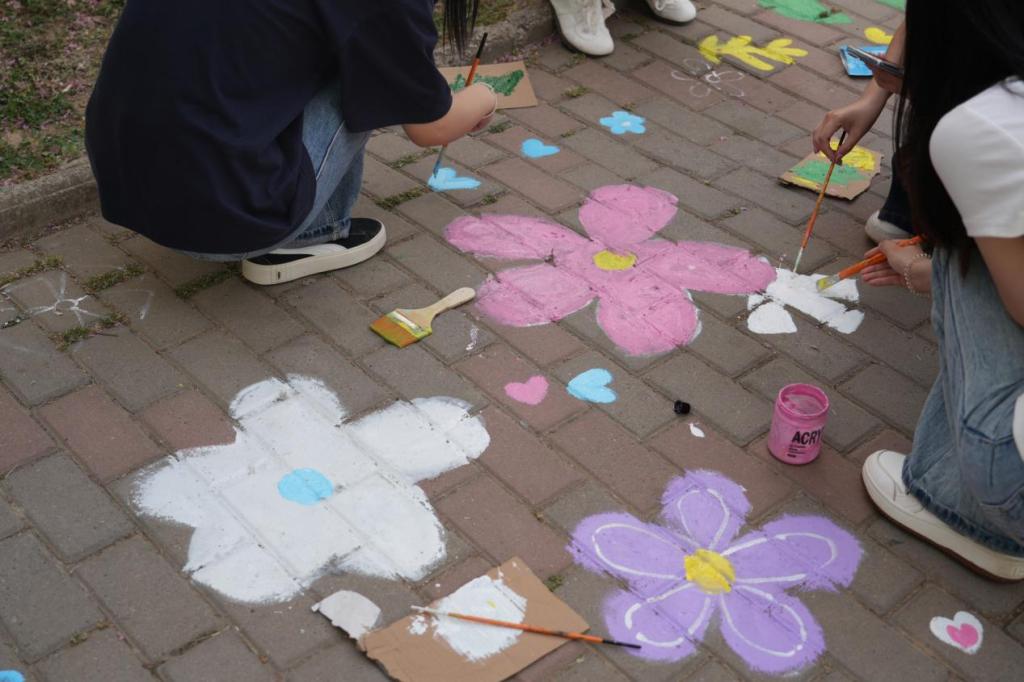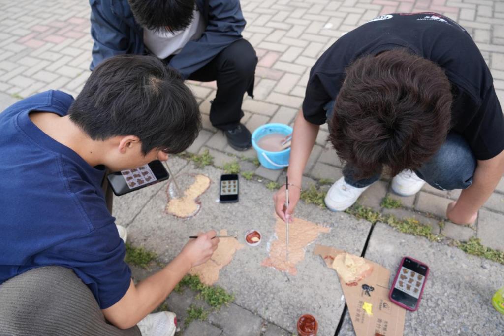 活动中,学生们充分发挥艺术特长,精心设计图案,潜心投入创作。他们根据绘制内容进行合理分工、默契协作,使各项工作有条不紊地进行。学生们不惧辛劳,全身心投入负责区域。