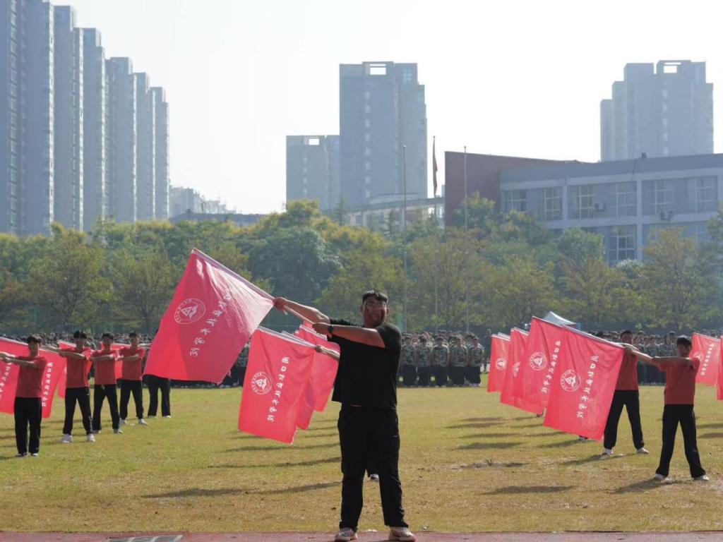 舞旗方阵——动作同步、造型多变,精准旗语诠释团队默契。