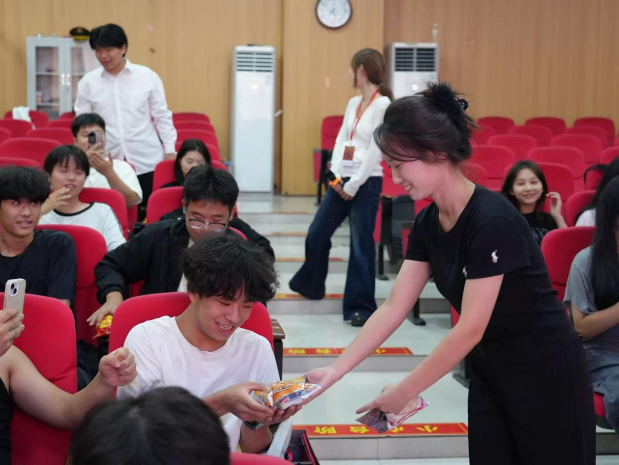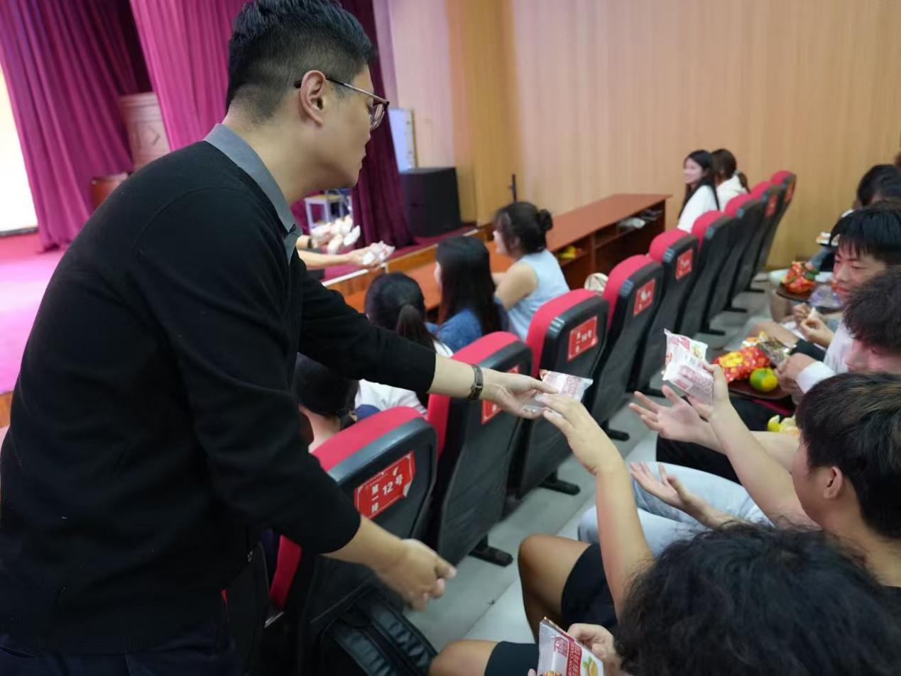 活动尾声,最温暖的“团圆时刻”如期而至——学院领导与老师们为现场的同学们分发了象征团圆的月饼。小小的月饼包裹着浓浓的关怀,当学子们拿着月饼,脸上洋溢着幸福的笑容,这份“校园团圆礼”让双节的温暖直抵人心。
