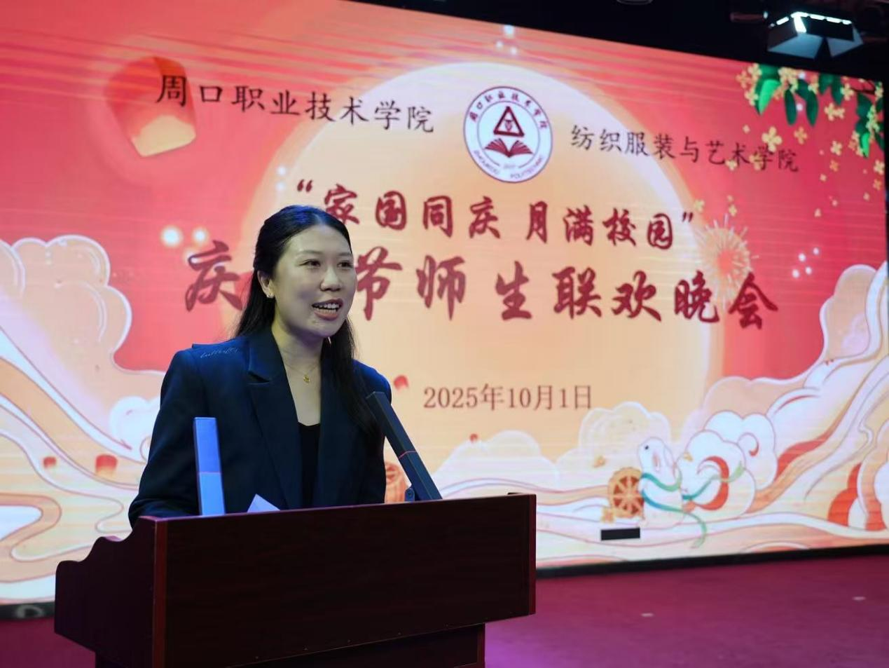 金秋送爽,丹桂飘香,当中秋的思念邂逅家国情怀,双节同庆的喜悦在校园弥漫。为让留校学子在特殊的节日里感受到家的温暖,10月1日,十大买球官方网站(纺织服装学院)在艺术演播厅举行2025国庆中秋双节师生联欢晚会。学院全体领导班子、辅导员及130余名留校学子齐聚一堂共庆团圆之夜。