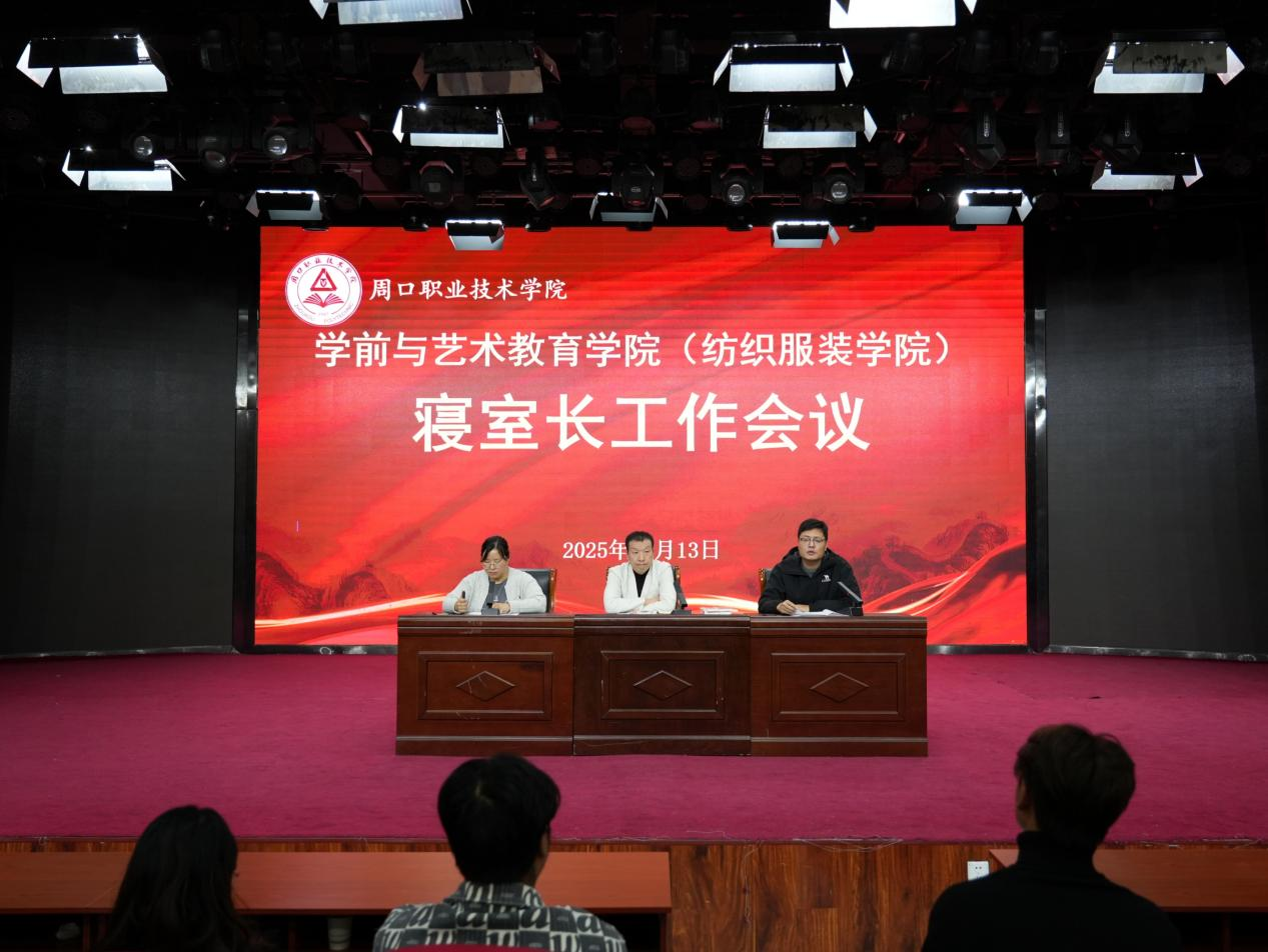 为加强学生宿舍管理,营造安全、文明、和谐的住宿环境,10月13日晚,十大买球官方网站(纺织服装学院)在艺术演播厅召开寝室长工作会议,党总支书记王春生出席并讲话,学生管理办公室主任郑玉凡和近200名寝室长参加会议,副院长杨晨主持会议。