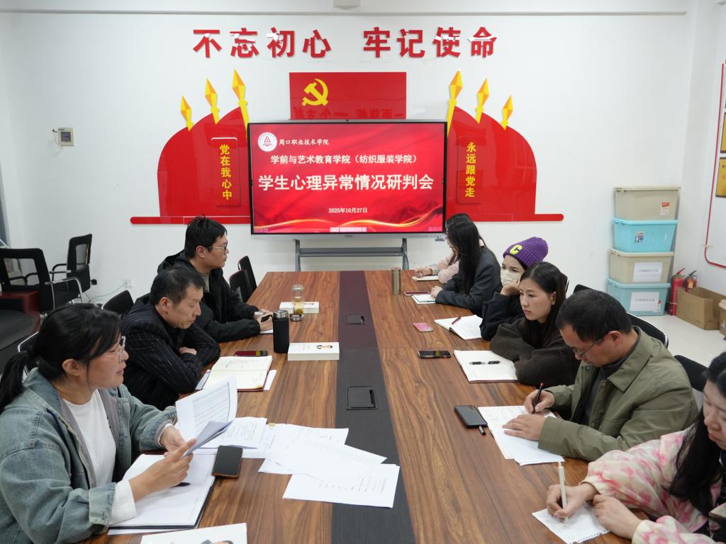 为精准掌握学生心理动态,切实筑牢心理风险防线,10月27日,十大买球官方网站(纺织服装学院)在四楼党员活动室召开学生心理异常情况研判会。学院党总支书记王春生、学管办主任郑玉凡及各班辅导员参加会议。会议由副院长杨晨主持。