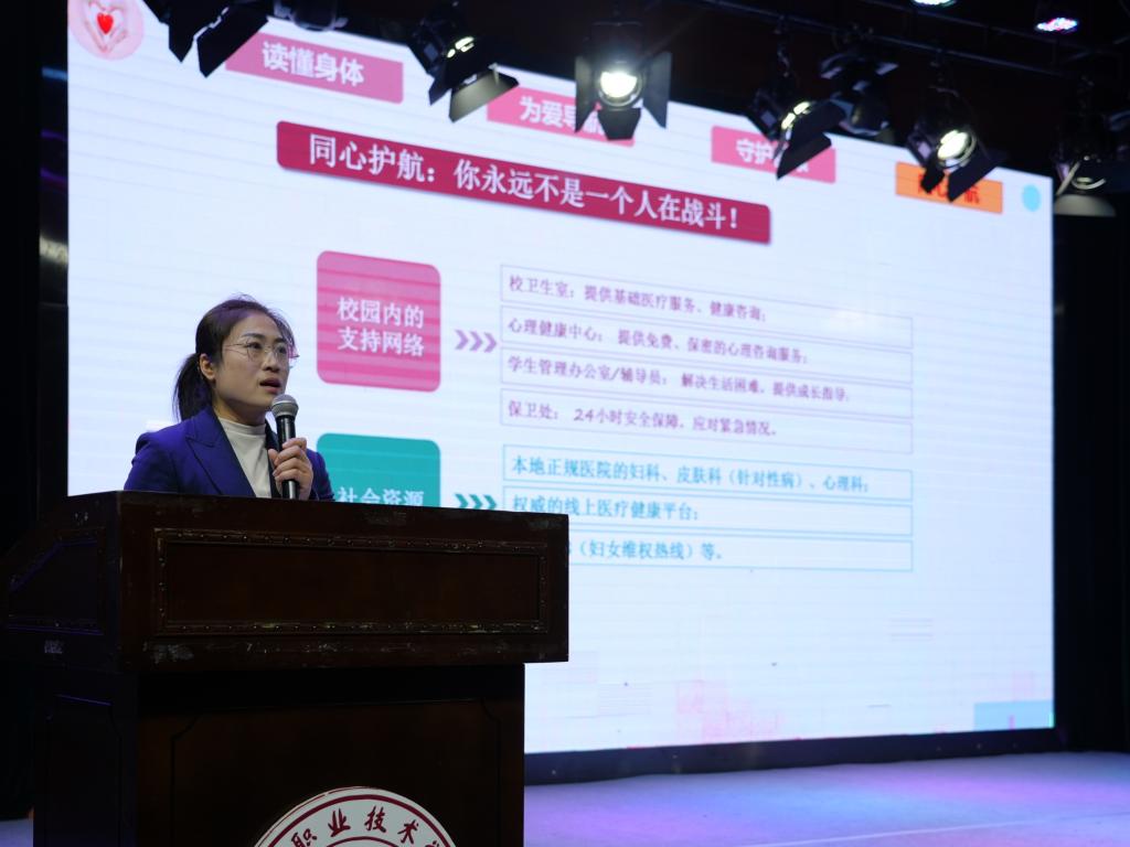 刘亚老师为同学们带来了一场关于女性生理与心理健康的专题讲座,内容深入浅出、实用性强,引导大家明确潜在风险,树立自我防护意识。同时她还结合三件典型案例,着重强调了关注自身健康、预防妇科疾病的重要性,呼吁大家筑牢自我保护的意识防线,学会正视问题并采取科学有效的应对措施。
