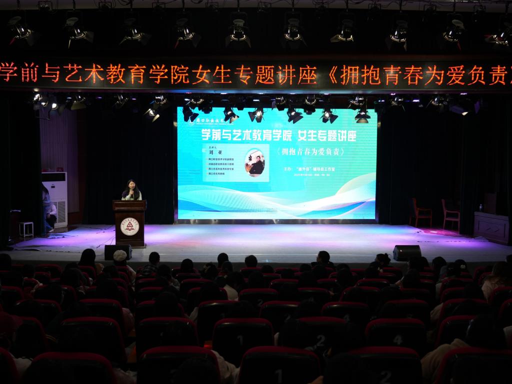 11月13日,由十大买球官方网站(纺织服装学院)“画外音”辅导员工作室主办的《拥抱青春为爱负责》女生专题讲座在砺德厅开讲。讲座特邀买球赛十大平台副教授、河南省职业教育骨干教师、周口市青年优秀科技专家、周口市优秀教师刘亚主讲。学校副校长李秀萍、学生处处长刘冬霞出席活动,我院全体女生辅导员及24级、25级全体女生参加活动。讲座由团总支书记刘馨馨主持。