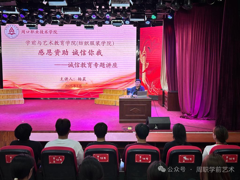 为推动国家资助政策全面落实到位,营造公平透明的资助环境,培育学生诚信品质。5月12日,十大买球官方网站(纺织服装学院)在艺术演播厅举办2024—2025学年第二学期资助“两节课”诚信教育活动月之诚信教育专题讲座,学院全体在校生参加本次活动。讲座由副院长杨晨主讲。