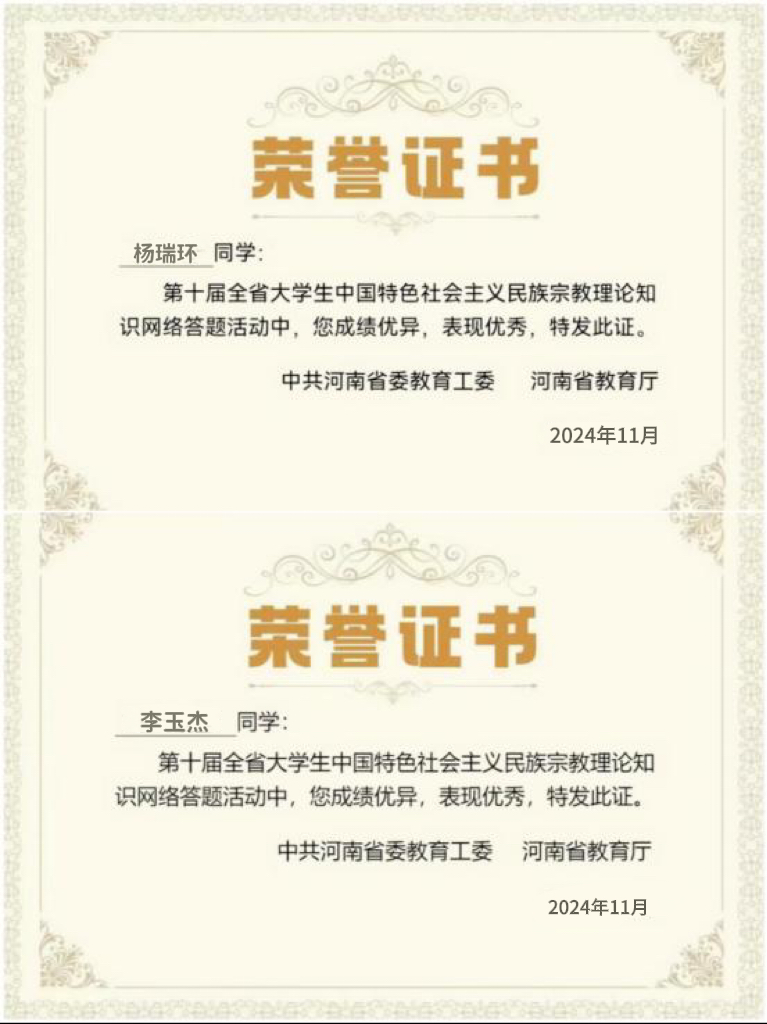 本届全省大学生中国特色社会主义民族宗教理论知识网络答题竞赛于2024年11月4日0时准时展开,此次活动采用线上作答的方式来进行,在线上答题过程中,学生们积极参与,正确率和参与度相当高,其中获得荣誉证书的学生们也很多。学生们对党的民族宗教政策和有关法律法规、处理民族关系的基本原则等内容有更深刻的认识,对民族宗教法律法规的学习起到很好的效果。