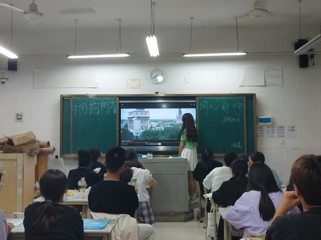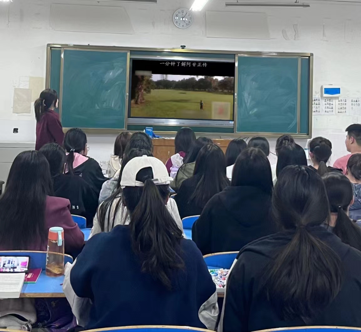 各班级集体观看电影《阿甘正传》,影片以20世纪50年代至70年代美国社会的风云变幻为背景,刻画了一个智力障碍者阿甘单纯憨厚的性格及荒诞离奇的经历,在阿甘的一生中,可以看到主人公乐观、积极向上、不畏惧、超越困境的勇气和精神。而作为新时代的大学生,我们更要学习阿甘那种诚实守信,认真勇敢的美好品质,豁达坦荡的面对生活。