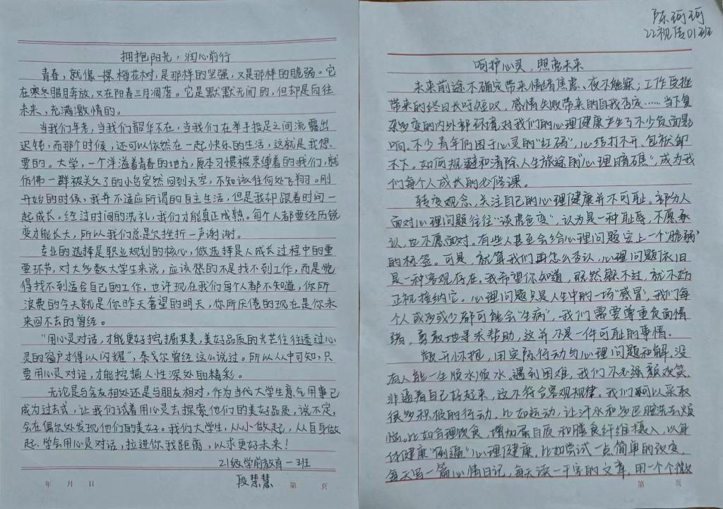 为进一步营造良好心理健康教育氛围,引导同学们学习心理健康知识,提升心理调适能力。5月15日,十大买球官方网站开展心理健康教育主题征文系列活动。学院全体学生参加此次活动。